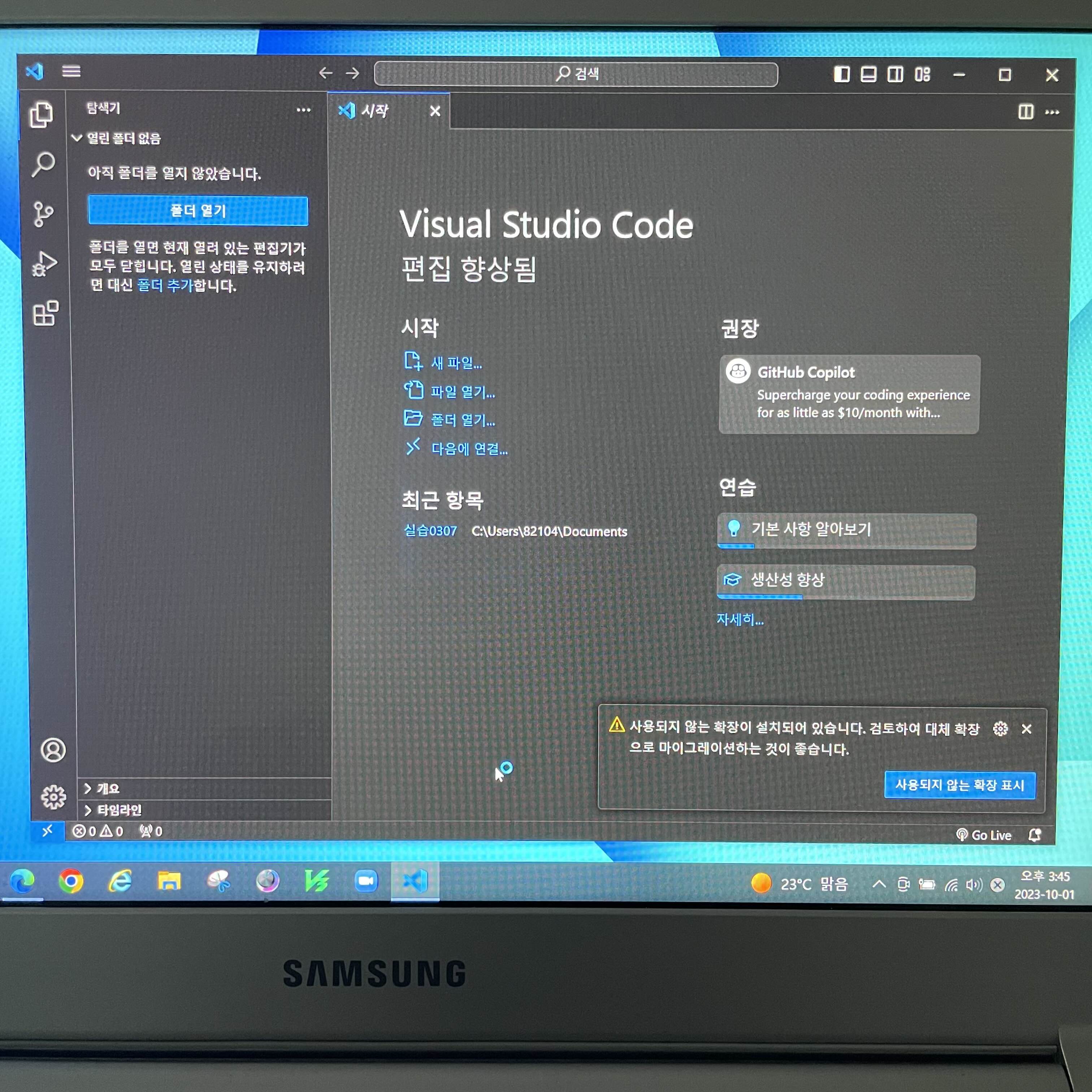 VS CODE를 첫 실행 했을 때 모든 게 다
